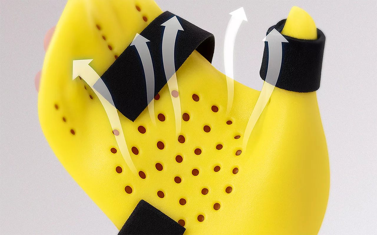 Små hål låter luften passera igenom, vilket förhindrar att svett samlas. Din hand håller sig sval även under långa terapisessioner.