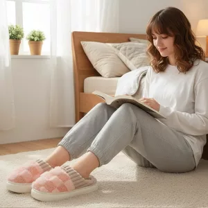 Varm choklad, en bra film och mina mysiga tofflor—den perfekta kombon! Dämpningen inuti känns som att gå på kuddar och de glider aldrig på vårt köksgolv.