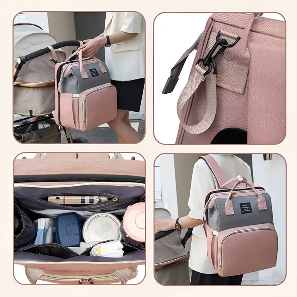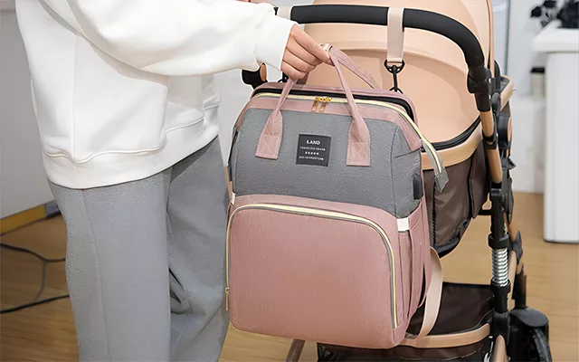 Du kan enkelt fästa vår mammaväska på en barnvagn. Detta ger dina axlar en paus medan du ser till att ditt barns väsentligheter alltid är inom räckhåll.