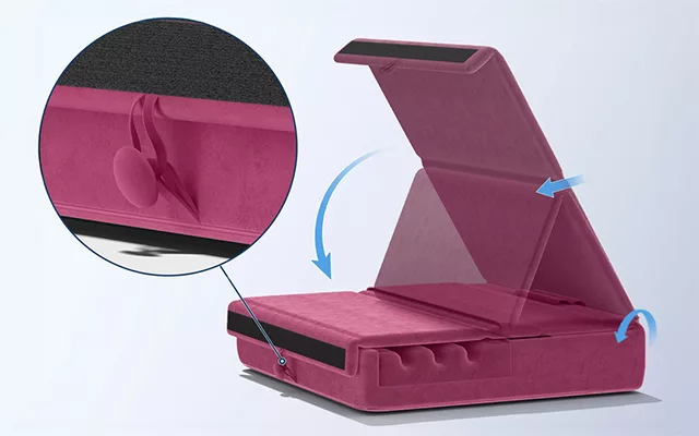 Vår surfplatte-kudde är lätt att packa ner när du reser eller förvara hemma. Den öppnas och stängs på några sekunder utan ansträngning.