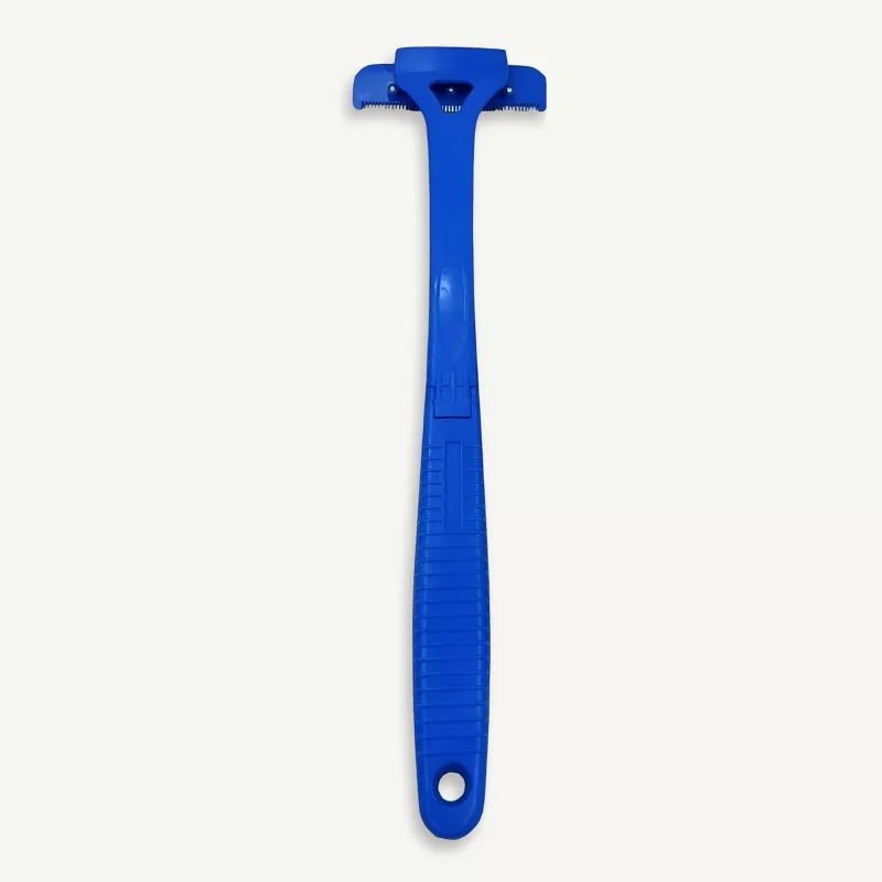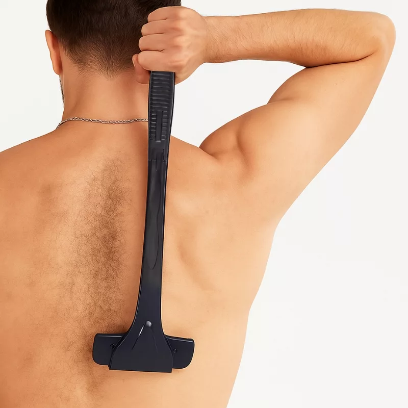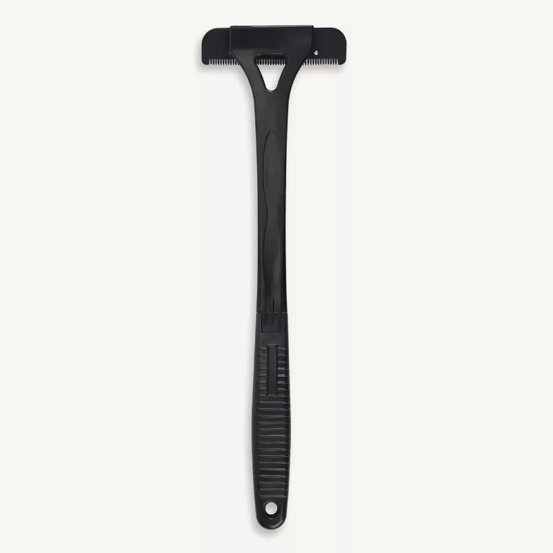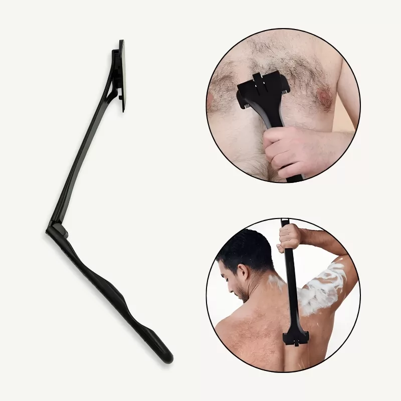 Den här rakapparaten är perfekt att använda själv. Handtaget når mitten av ryggen och de vassa bladen tar allt på en gång.