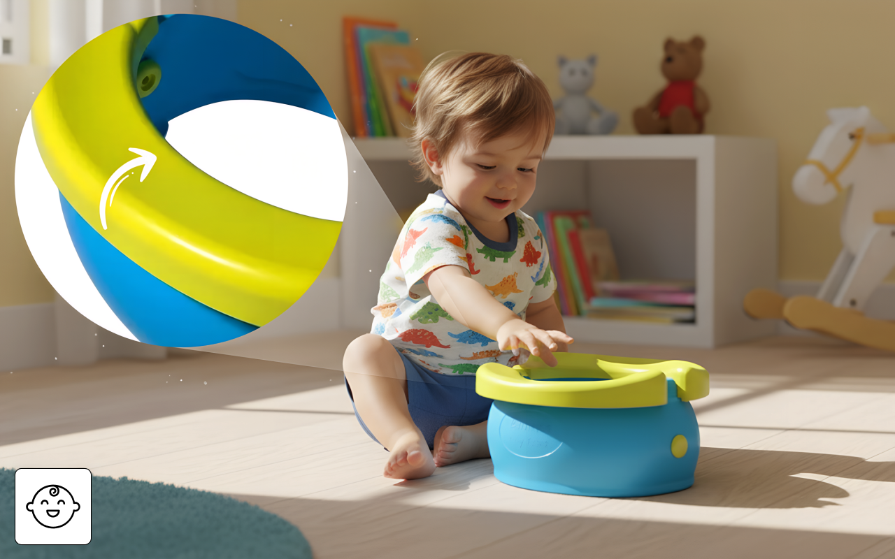 Klart färger och släta kanter får barn att känna sig trygga. Potträningen blir mindre stressande för små nybörjare.
