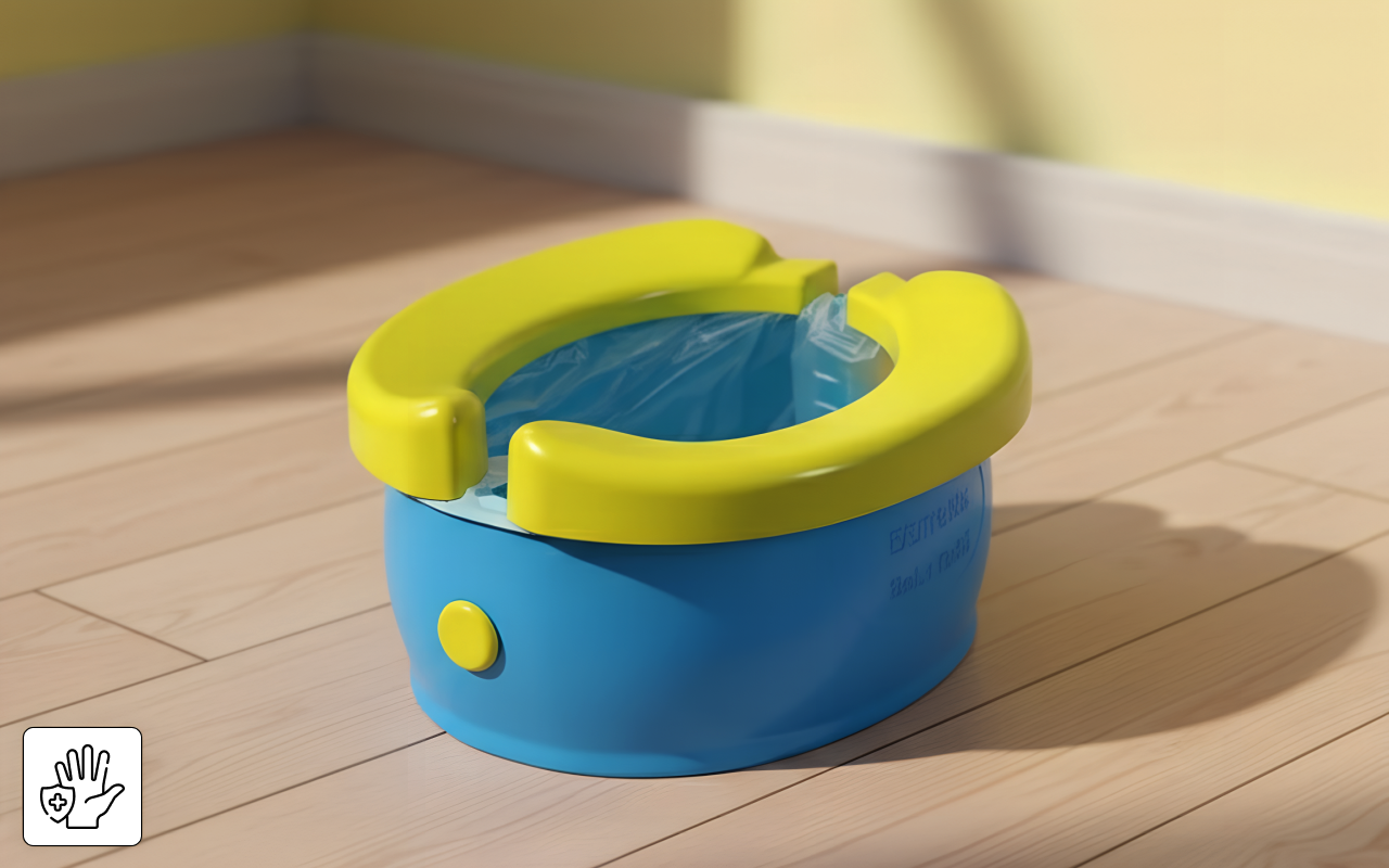 Denna pottsits ser till att de små slipper smutsiga offentliga toaletter. Engångsinlägg gör att händerna förblir rena varje gång.