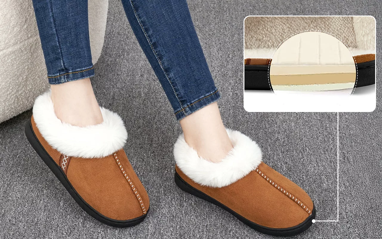 Dessa inneskor är otroligt bekväma! De tjocka sulorna gör det enkelt att gå på hårda golv. Dessutom fryser mina fötter aldrig längre.