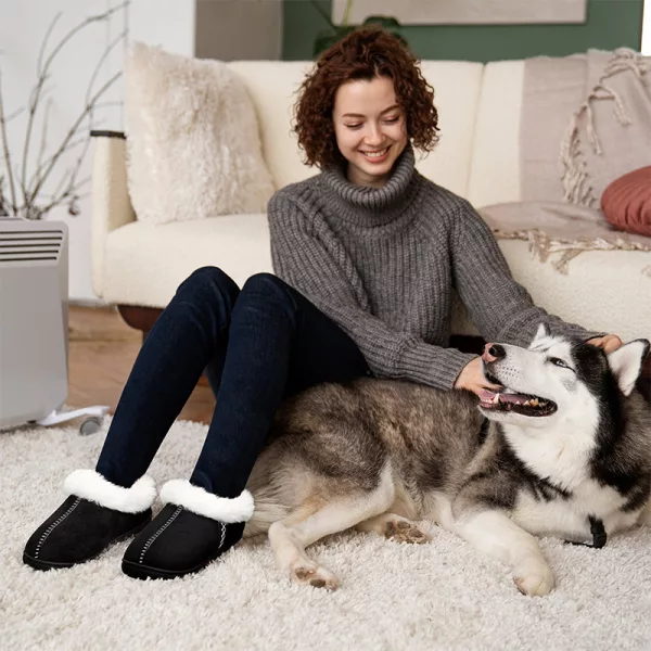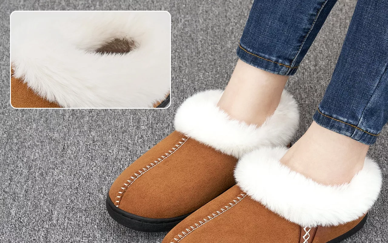 Stort fan av dessa fluffiga tofflor. Mina fötter håller sig så varma, även på vintern. Greppet undertill fungerar bra på våra trägolv.