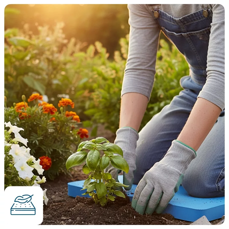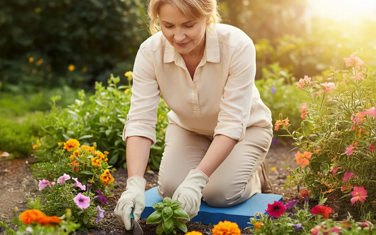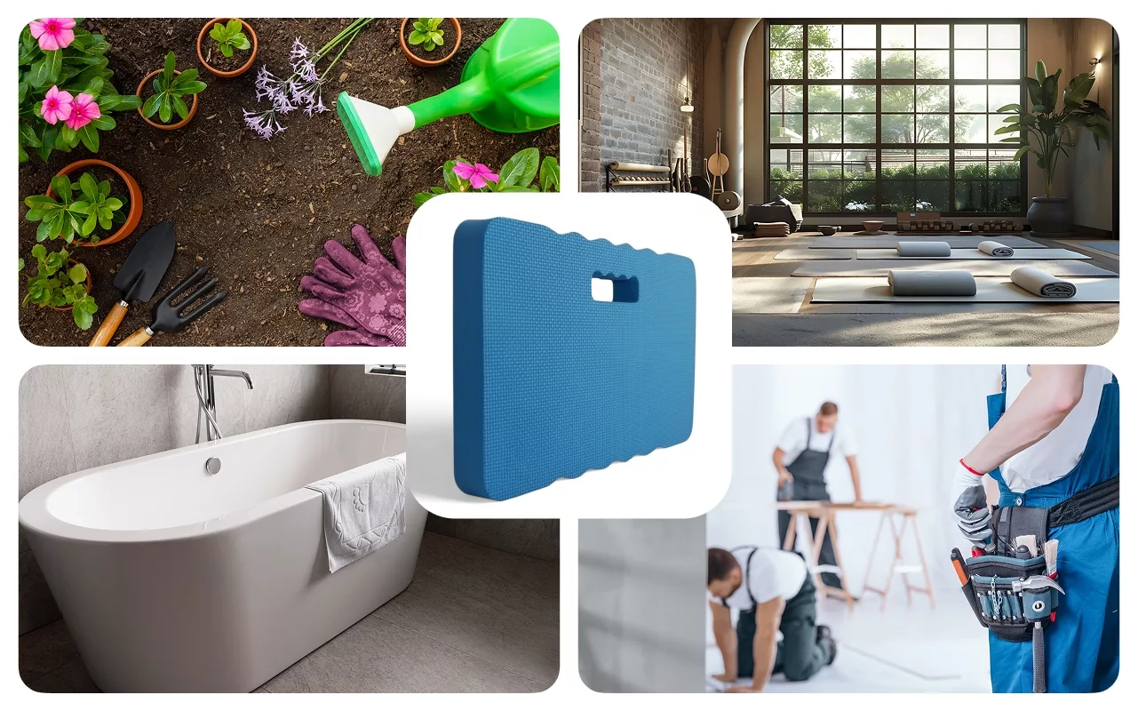 Dämpning absorberar tryck från ojämna golv eller fuktigt gräs. Att knäböja känns mjukt och minskar värk och ömhet.