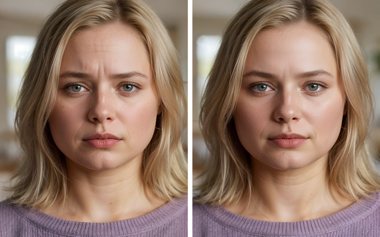 Ansiktet ser utvilat ut efter användning av Ortorex Gua Sha. Mjuka drag lindrar spänningar och minskar svullnad under ögonen, vilket gör att du ser fräsch ut.