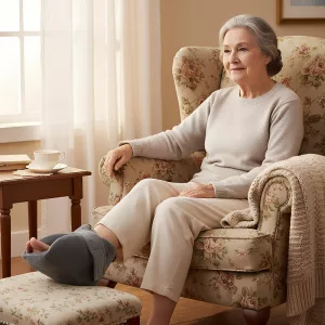 Sådan lättnad för min mamma som har problem med ömma hälar. Kudden sitter på plats och det justerbara bandet gör det enkelt för henne att använda den själv.