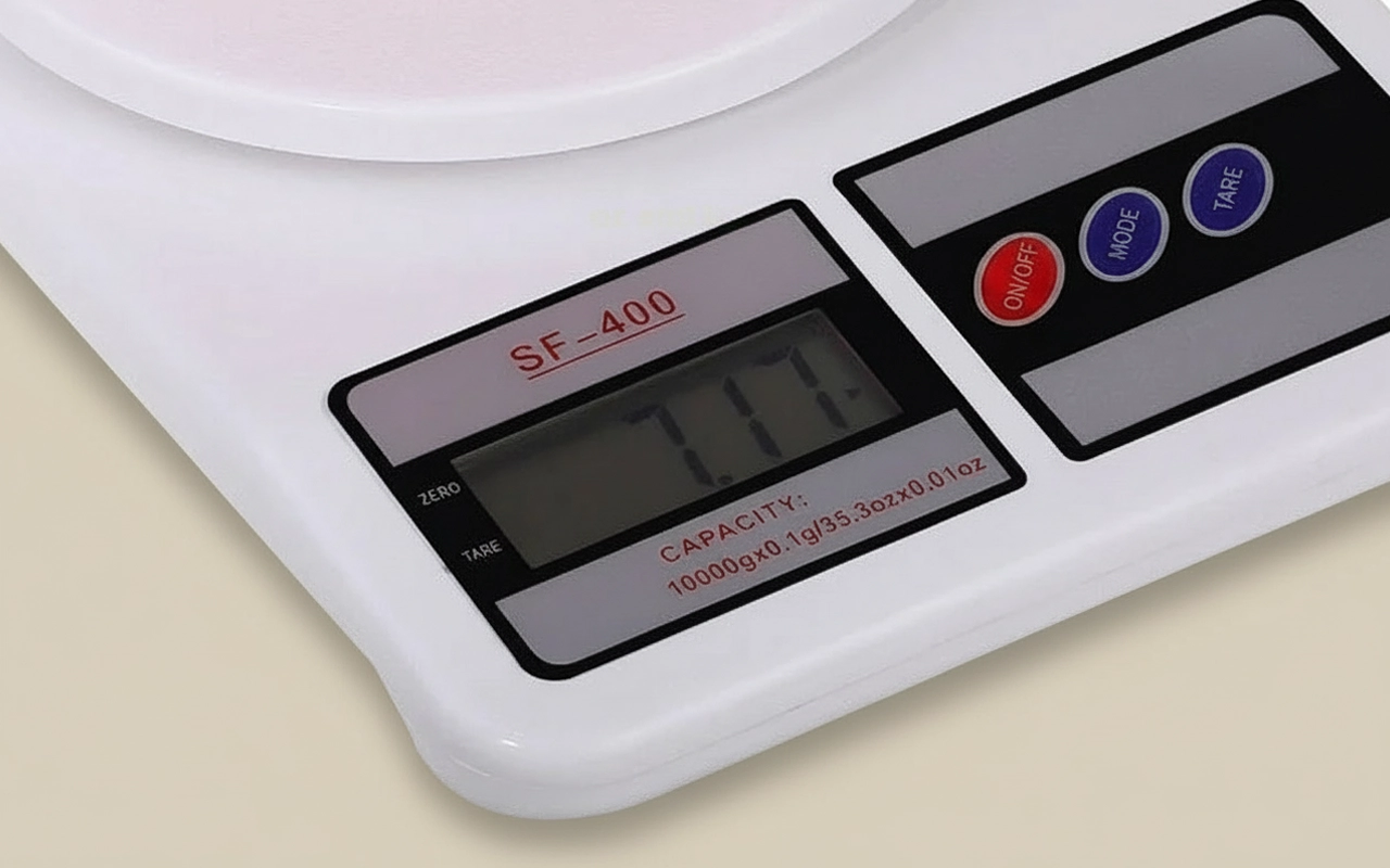 Denna våg har en LCD-skärm, så du kan använda den även i svagt ljus. Den gör din matlagning enkel när som helst!