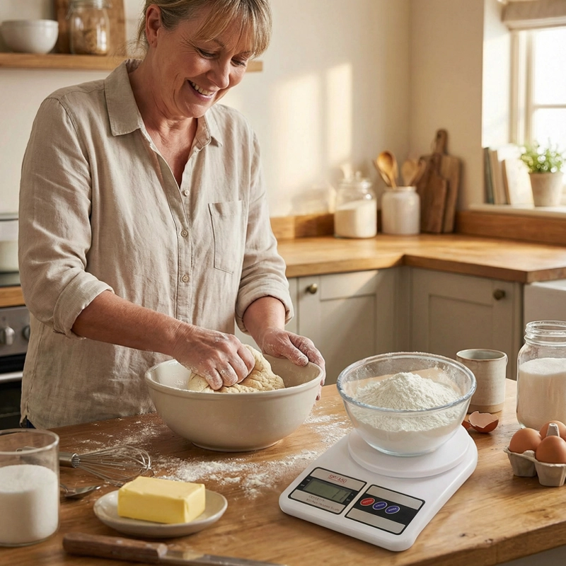 Jag får äntligen mina bröddegar precis rätt! Jättenöjd att den visar små mått. Den vattentäta funktionen gör att jag kan laga mat utan att oroa mig för spill.