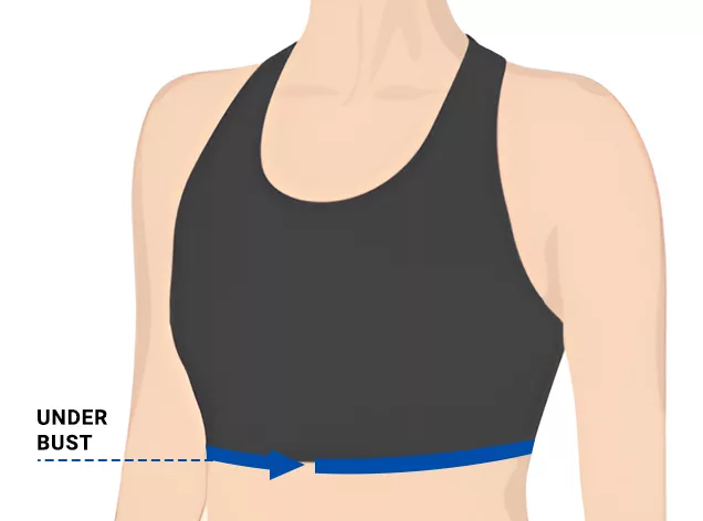 - 2. För att hitta underbystmåttet, linda måttbandet runt din bröstkorg, direkt och jämnt under bysten.