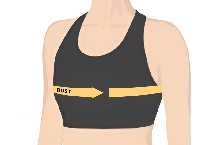 - 2. För att hitta bystmåttet, vira måttbandet runt den fylligaste delen av bysten. Se till att måttbandet hålls horisontellt. Håll det stadigt, inte för hårt.