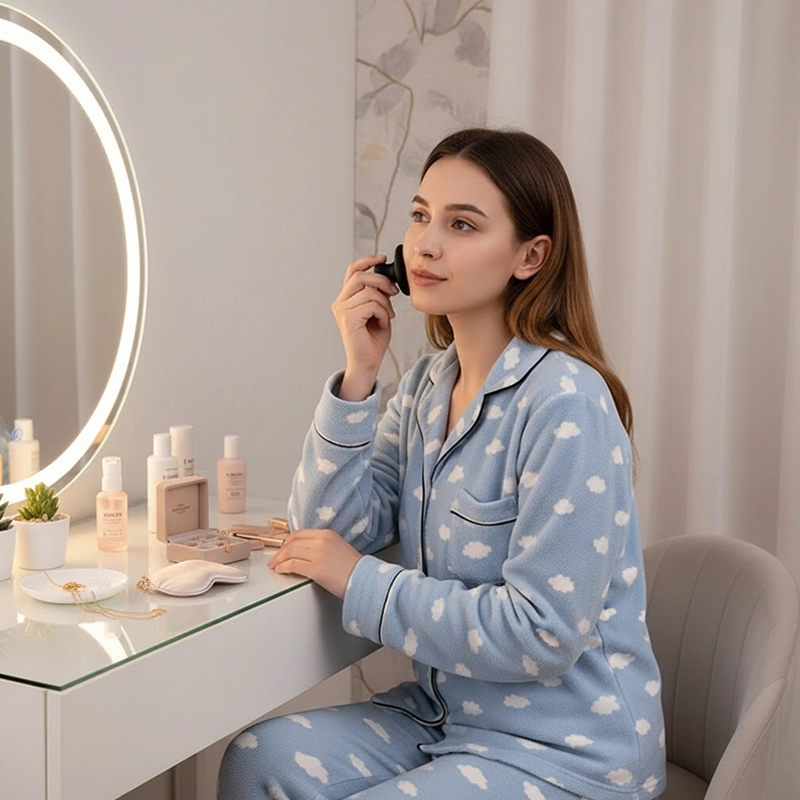 Min hud ser klarare ut sedan jag började använda stenen varje morgon. Den tar bort svullnad och lugnar mitt ansikte.