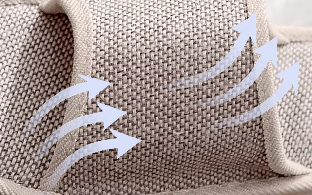 Luft flödar lätt inuti tofflorna, vilket förhindrar svett och luktuppbyggnad.