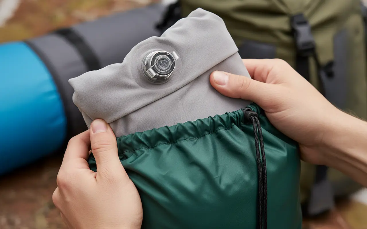 Den här lilla kudden följer med mig överallt! Jag älskar hur snabbt den blåses upp och töms, och den är lätt att rengöra efter camping.