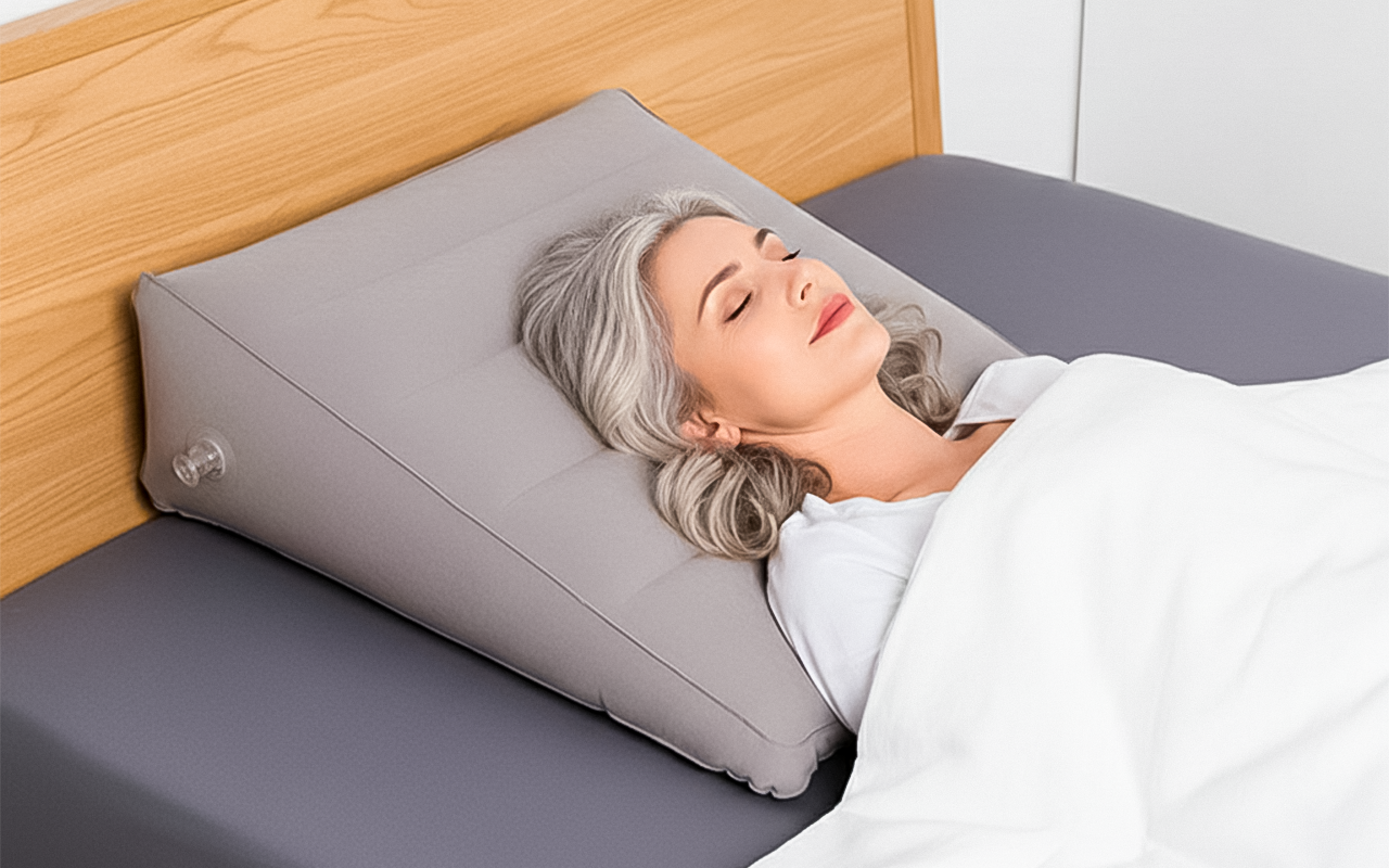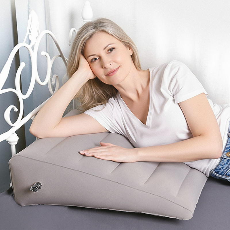 Njut av lugnande lindring medan du läser, sover eller slappnar av hemma. Den kompakta designen passar enkelt i vilken väska som helst för resor. Blås enkelt upp när det behövs, och töm sedan och förvara snabbt undan. Ortorex kilkudden hjälper dig känna dig bekväm överallt.