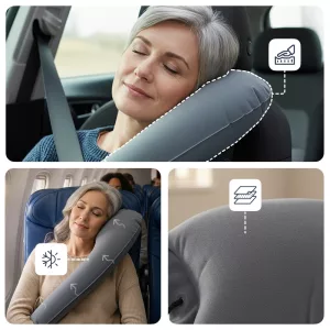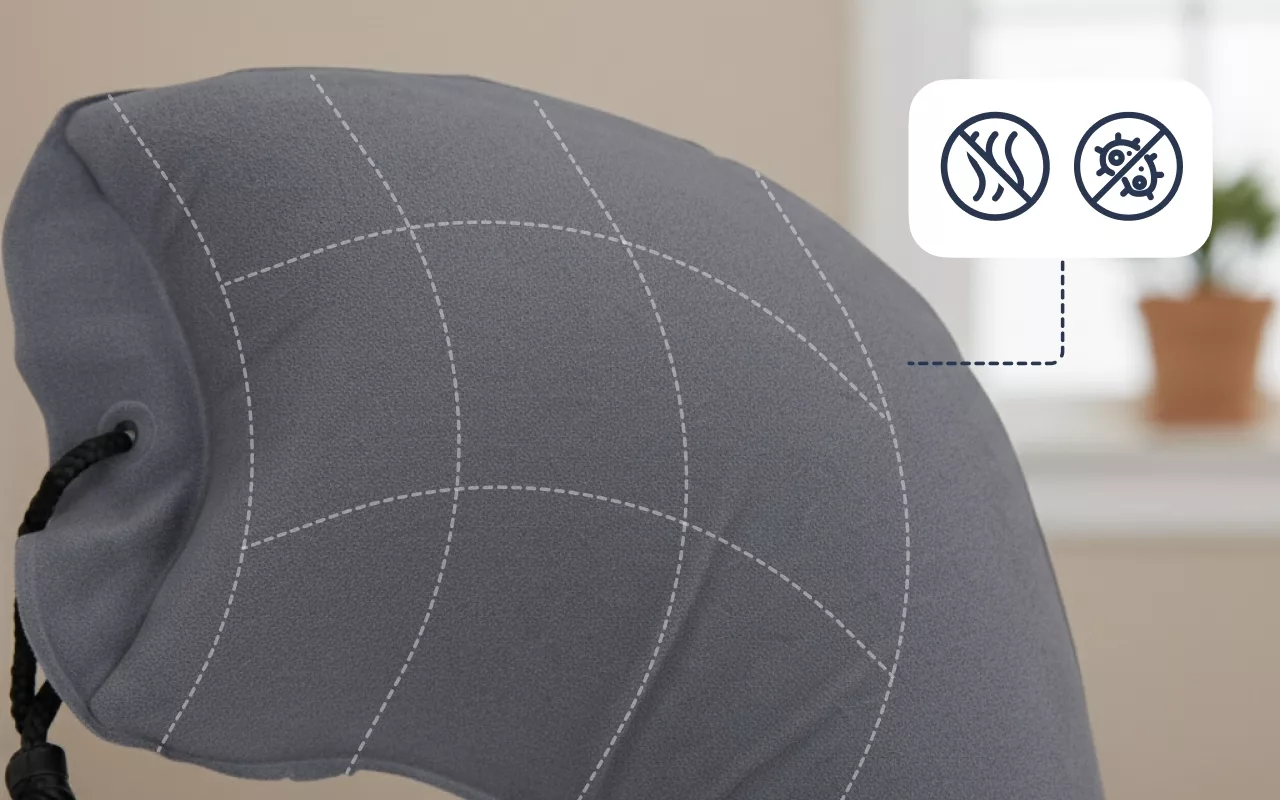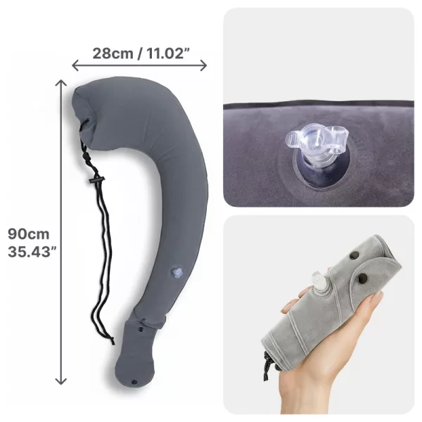 Denna lätta kudde viks ihop på några sekunder för smidig packning. Bär den överallt och håll din väska lätt och organiserad.