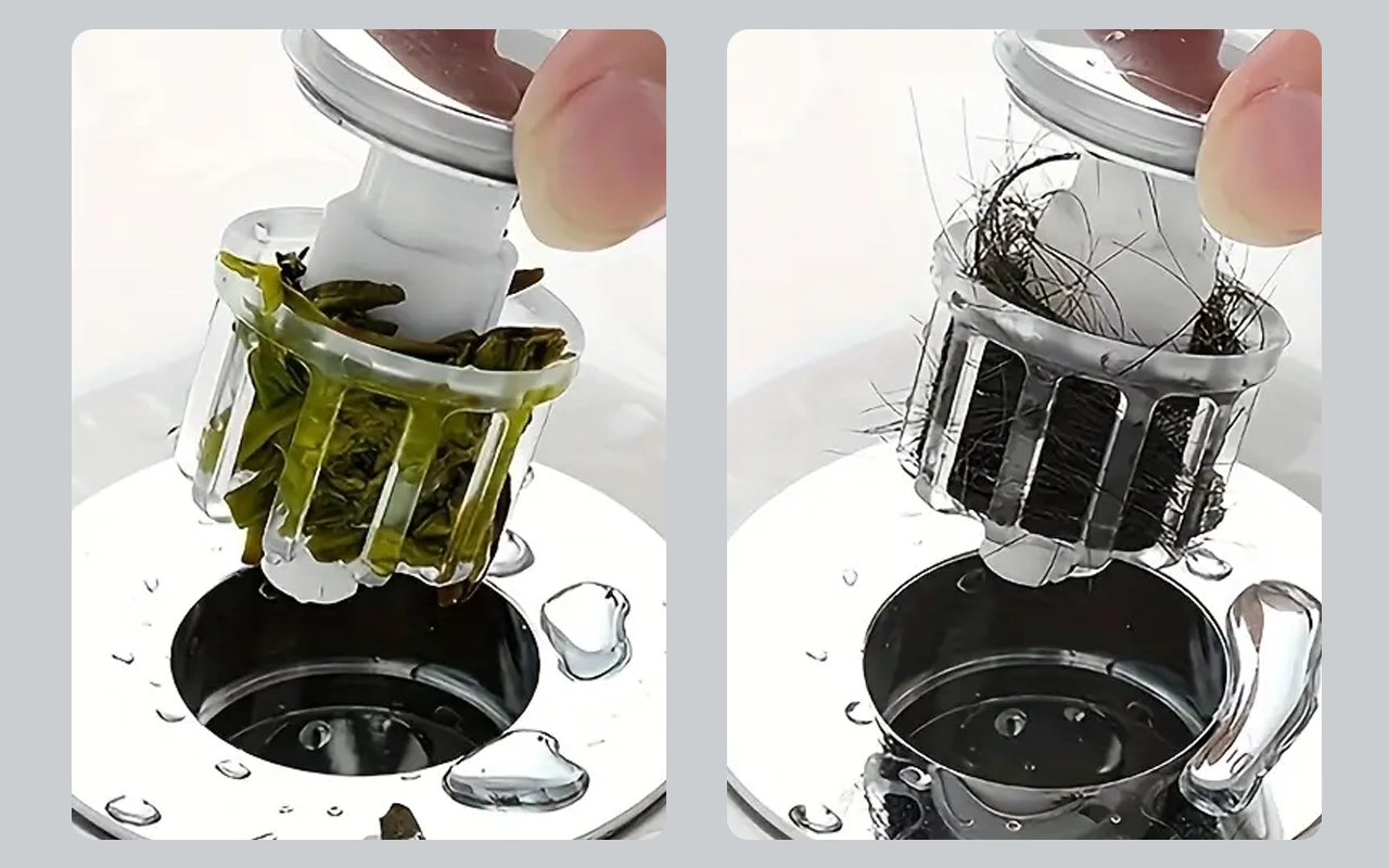 En inbyggd filterkorg fångar snabbt upp hår och smuts. Säg farväl till blockeringar och njut av problemfri avrinning.