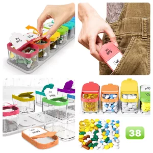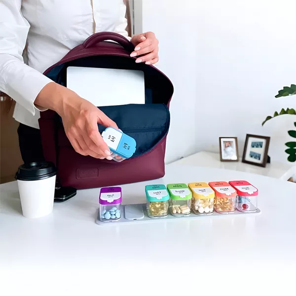 Rymmer stora mängder piller utan att klämma eller blanda. Slipp bära många burkar eller oroa dig för borttappade doser.