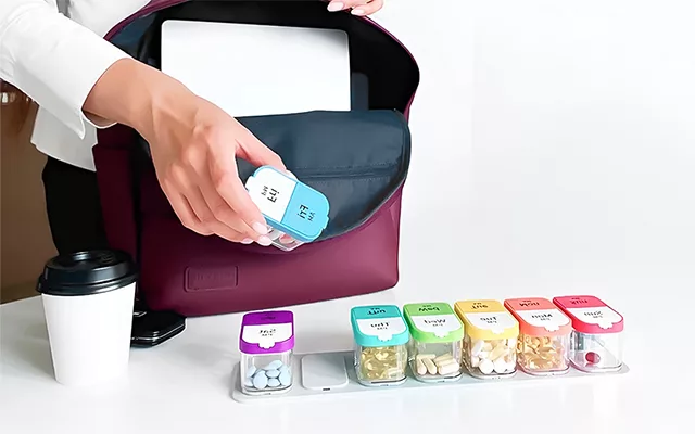 Rymlig, färgglad och håller min medicin säker varje dag.