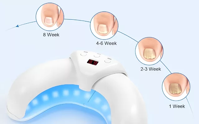 Vår laser ger en tillförlitlig lösning utan att orsaka obehag eller biverkningar. Den använder två typer av ljus, rött och blått, för att effektivt rikta och ta bort svamp.