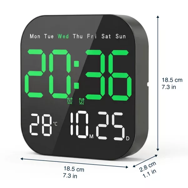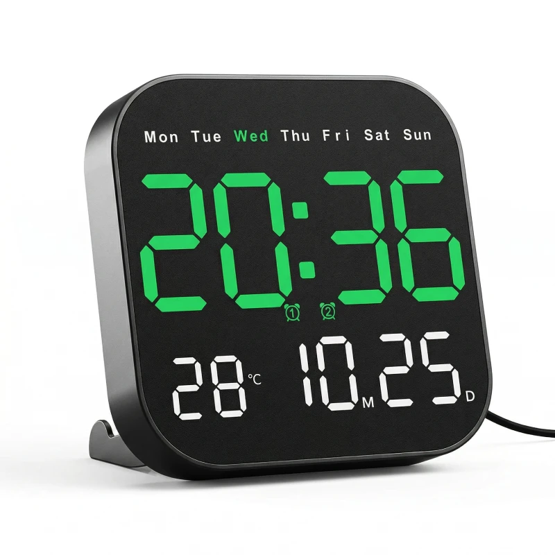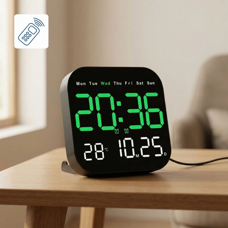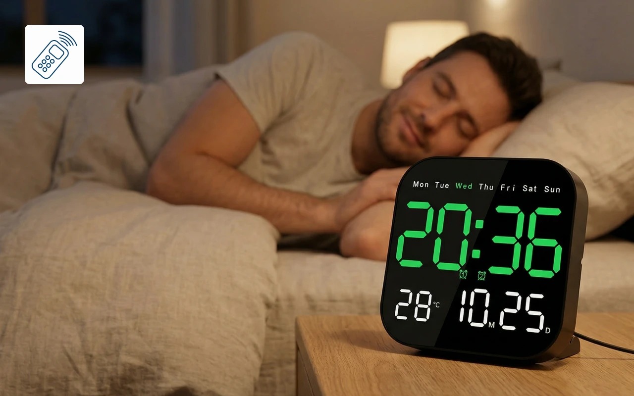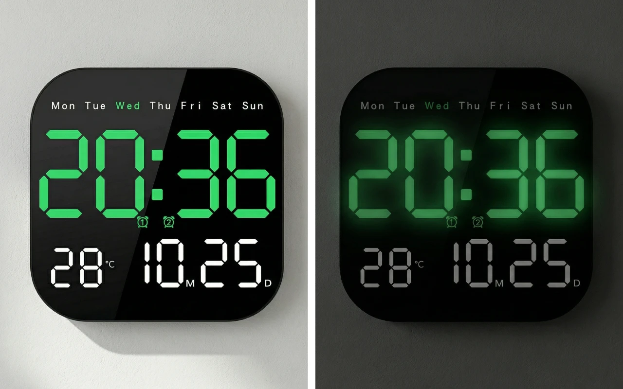 Läs siffrorna snabbt på långt håll i livliga utrymmen. Välj mellan tio ljusnivåer för dag, kväll eller sömn.