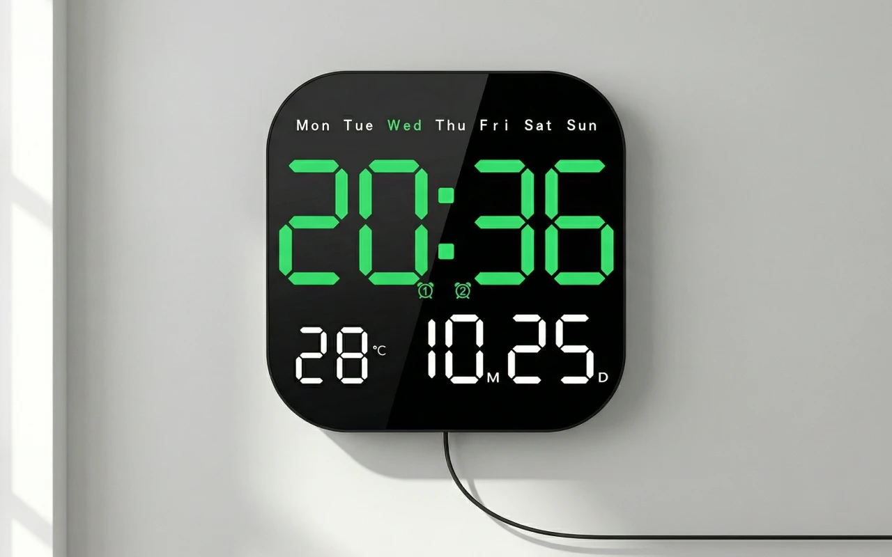 Köpte väggklockan till min äldre pappa; den stora displayen och tydliga veckodagarna gör det enkelt för honom att hålla koll på sina tider.