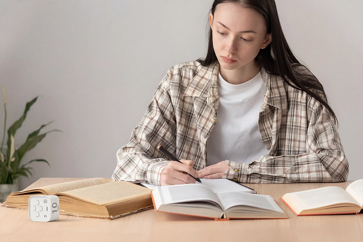 Inget mer krångel med timer på mobilen! Jag bara vänder kuben för att ställa in pluggtiden och sätter igång. Superanvändbar efter skolan.