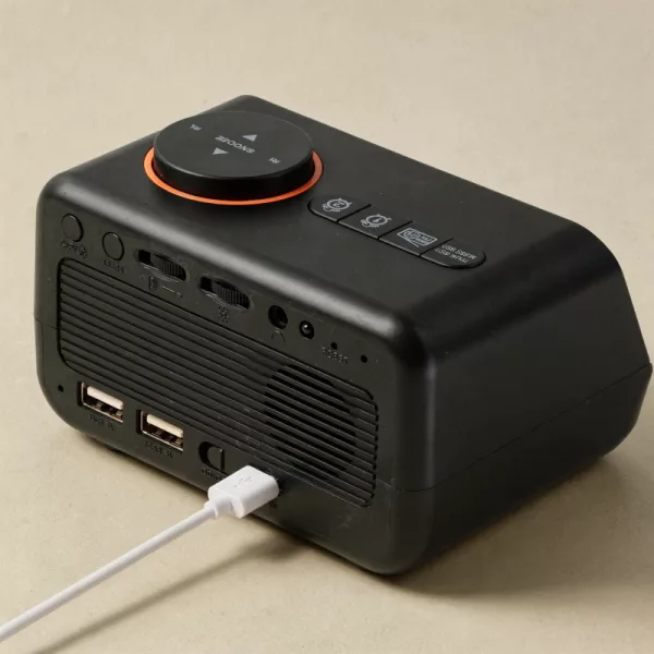 Kontrollera temperatur, luftfuktighet och kalender varje gång du kastar en blick på den. Dubbla USB-portar gör det snabbt och enkelt att ladda enheter.