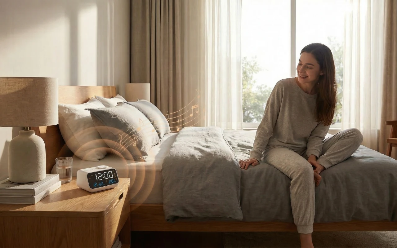 Jag är en djupsovare och de dubbla alarmen håller mig i fas. Jag gillar att vakna till mjukt radioljud istället för ett hårt pipande ljud.