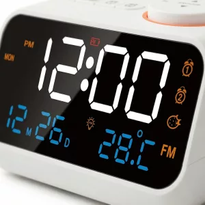 Skaffade den här lilla klockan till vårt sovrum och älskar den. De stora siffrorna, radion och väderinformationen gör morgnarna smidigare för hela familjen.