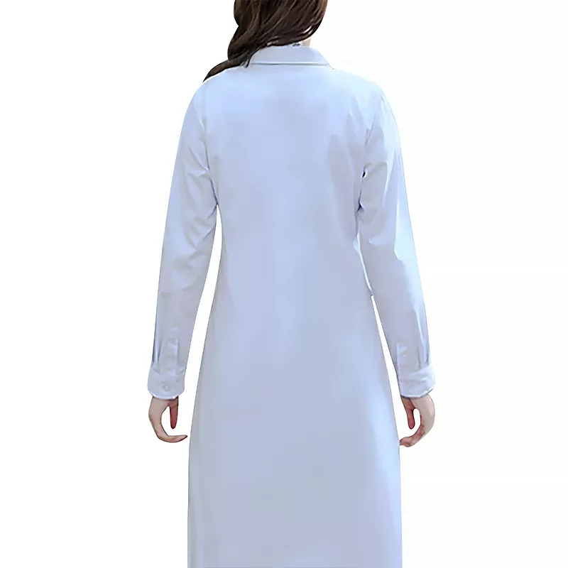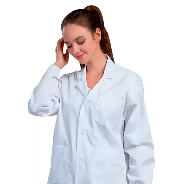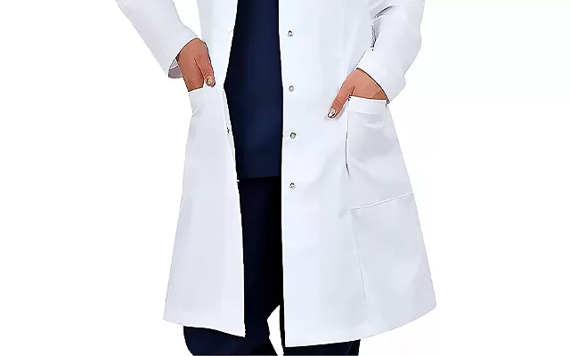Jag bär denna labbrock varje dag på jobbet och den sviker mig aldrig. Den är bekväm, släpper igenom luft och ser fortfarande ny ut efter många tvättar.