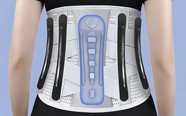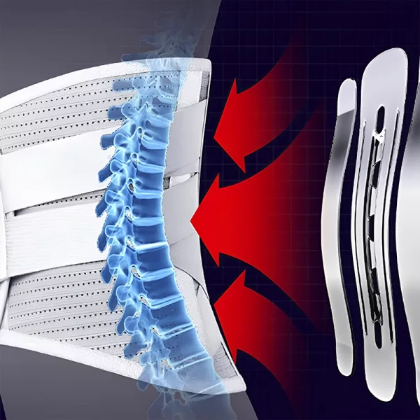 Metallremsor säkerställer en fast stabilisering av din rygg och förhindrar överdriven rörelse. Denna funktion hjälper till att bibehålla rätt hållning utan obehag.