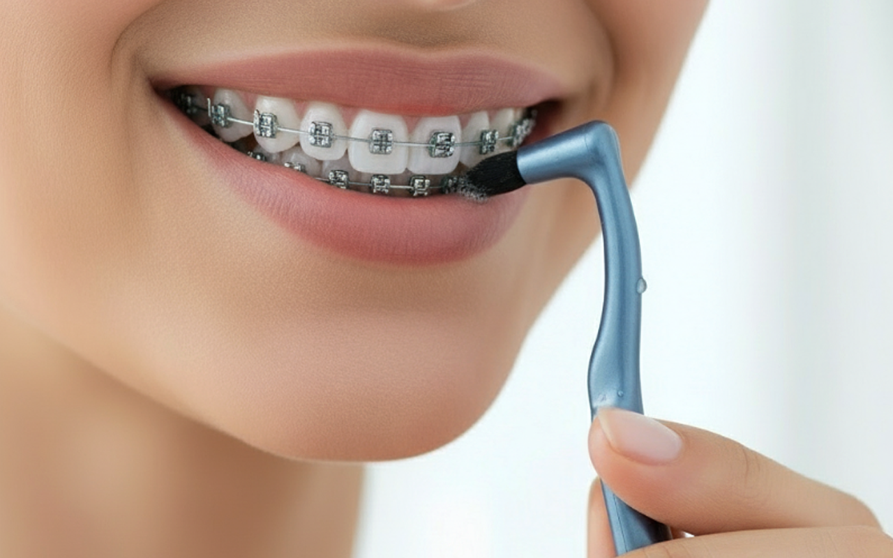 Den speciella formen glider lätt runt fästen och trådar. Den håller tandställningen ren och orsakar inget obehag.