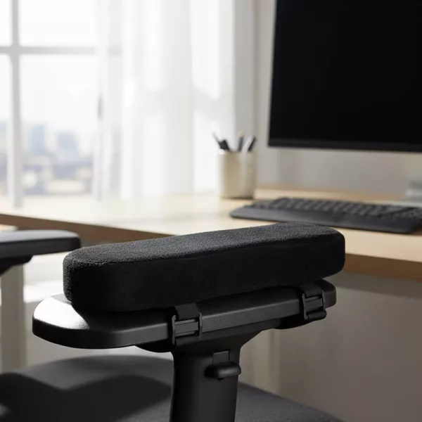 Köpte detta till min kontorsstol hemma. Vadderingen stöttar mina underarmar så bra att mina axlar förblir avslappnade, och jag kutar inte längre över skrivbordet.