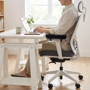 Mina armbågar brukade pressas mot hård plast hela dagen. Med dessa kuddar omfamnar memoryskummet mina armar varsamt, och jag kan faktiskt fokusera i stället för att sitta och vrida mig.