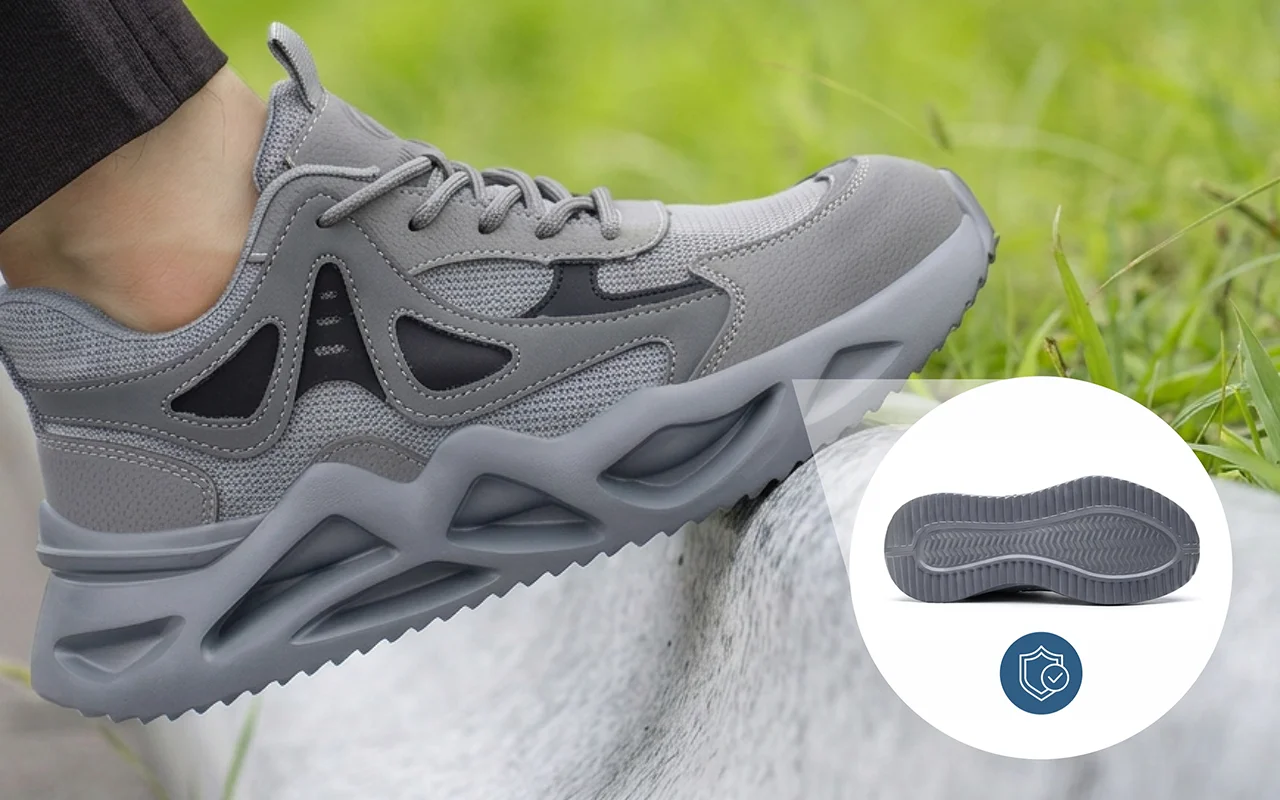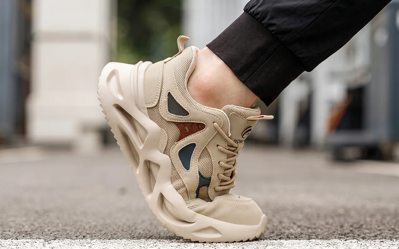 Ortorex-skor använder skyddande mellansulor som blockerar spikar, skärvor och vassa rester. Självsäkra steg ersätter oroliga blickar nedåt över ojämna, oförutsägbara golv.