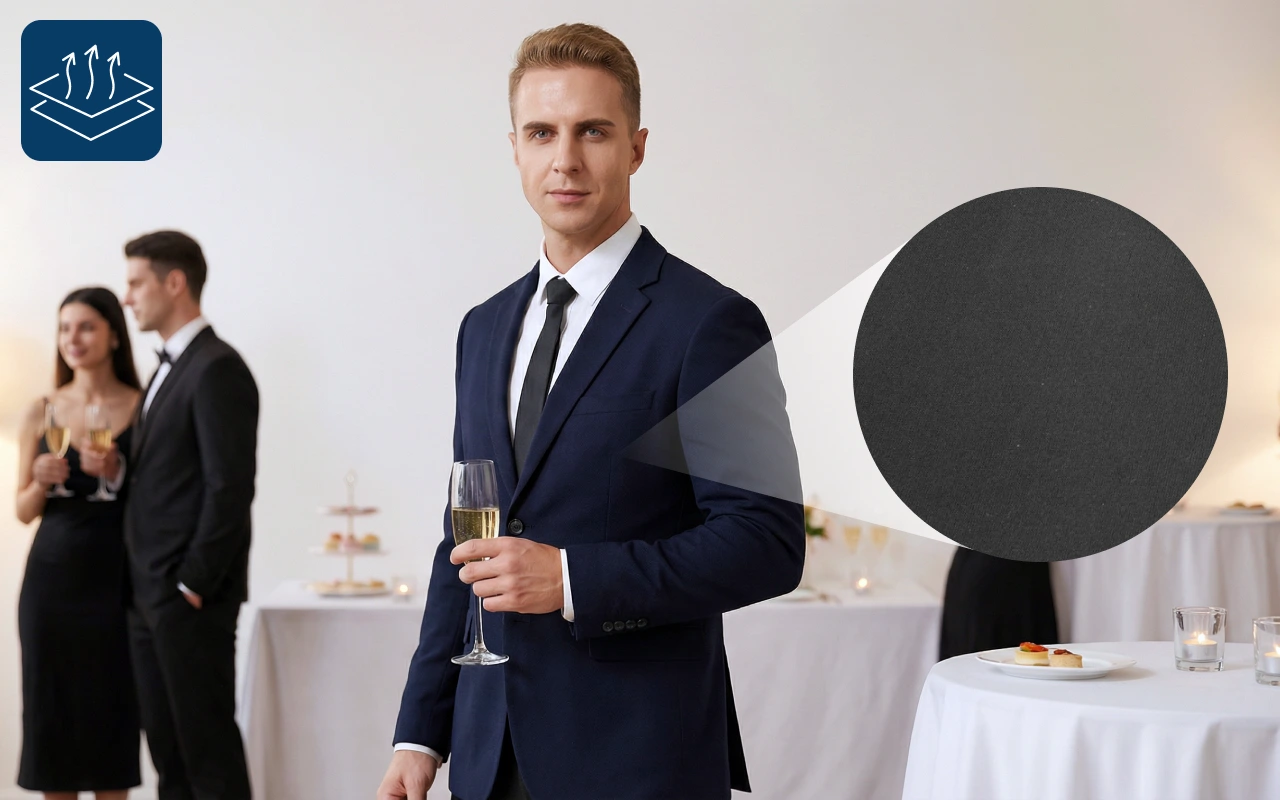 Andningsbart material håller sig svalt och lätt under alla kläder. Ingen klämning eller åtsittande, så du kan röra dig enkelt.