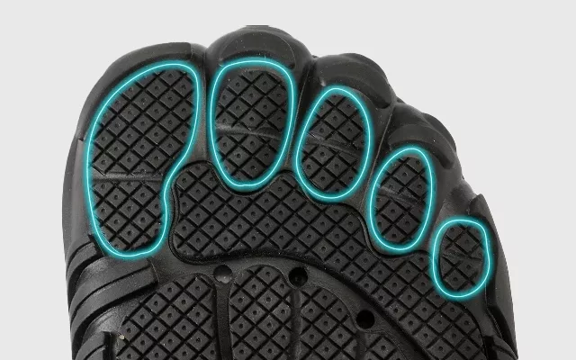 Mjuka sulor böjs med varje rörelse och stödjer naturliga rörelser. Greppet håller dig stabil och säker på alla utomhusunderlag.