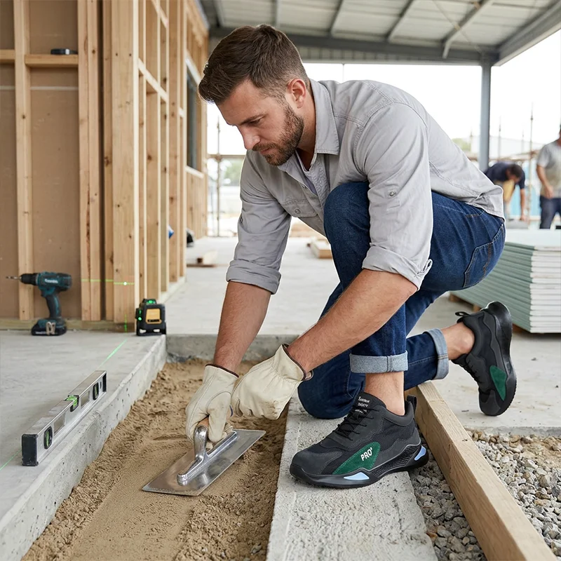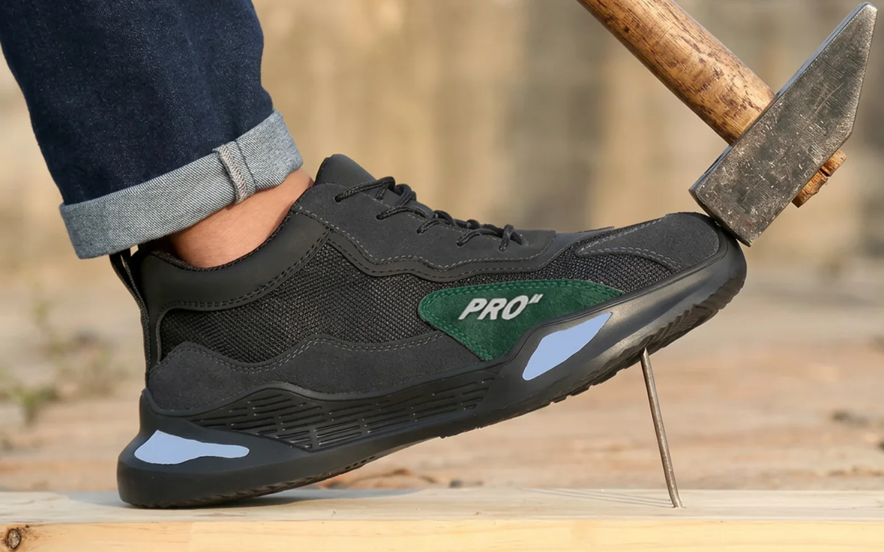 Jag använder dessa stålsneakers på byggen och hemma. De känns som vanliga träningsskor men klarar ändå spik, skruvar och annat skräp under fötterna.