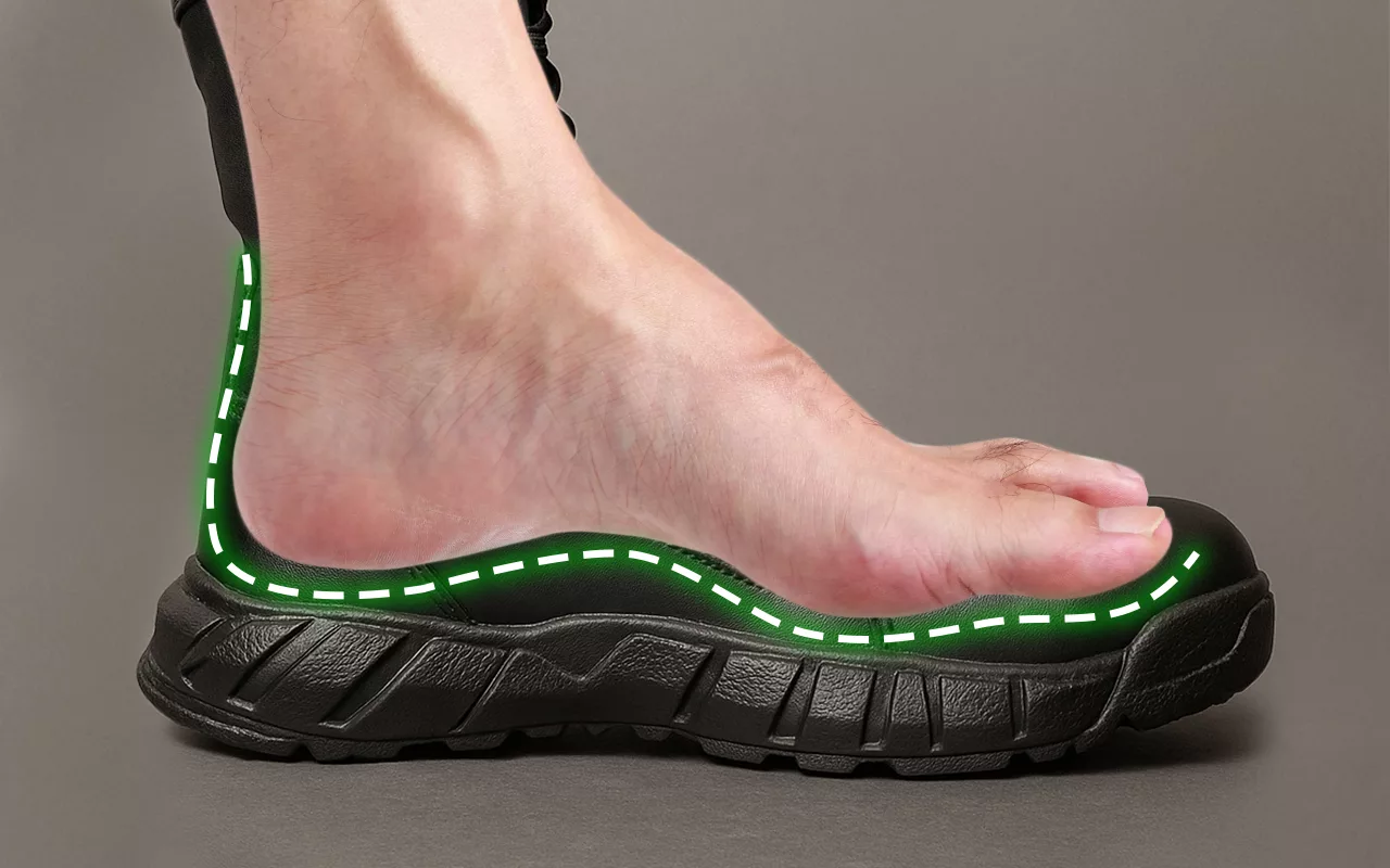 Stark sula förhindrar att du halkar på svåra stigar eller vått underlag. Böjda spår ger balans och säkrare rörelse utomhus.