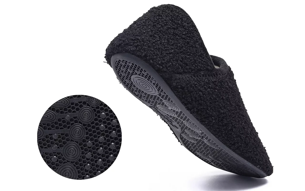 Den mönstrade sulan förhindrar halkolyckor på kakel eller trägolv. Säker rörelse minskar oron för plötsliga olyckor.