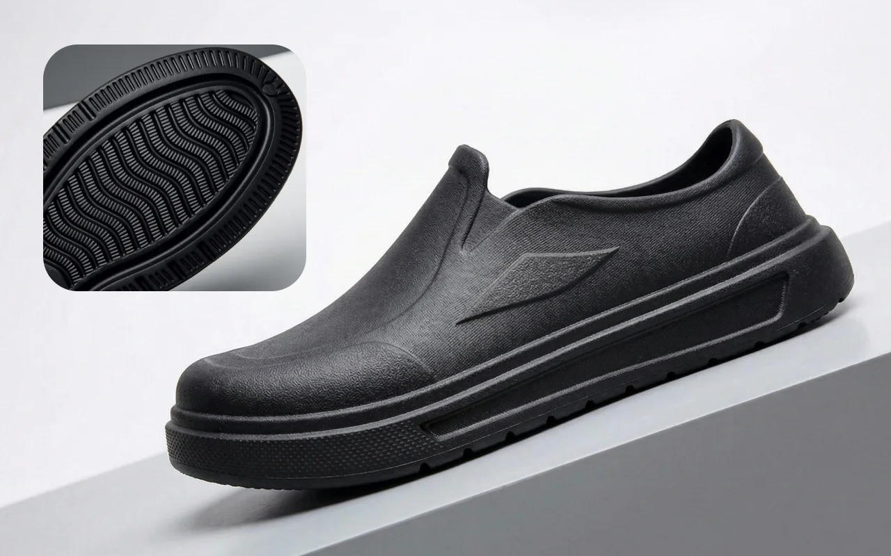 Jag är kock och köksgolv blir lätt stökiga. Dessa skor håller vattnet ute, halkar inte på oljiga fläckar och är lätta att rengöra efter långa arbetspass.