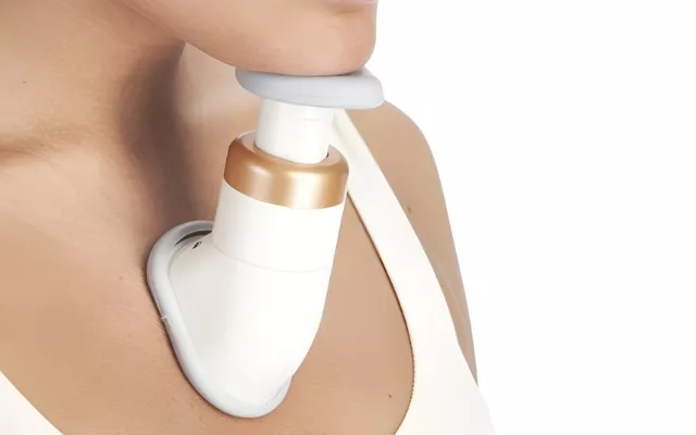 Ortorex halslinjeförminskare passar bekvämt i din hand och under din haka. Den tillåter smidig rörelse utan att orsaka obehag eller irritation.
