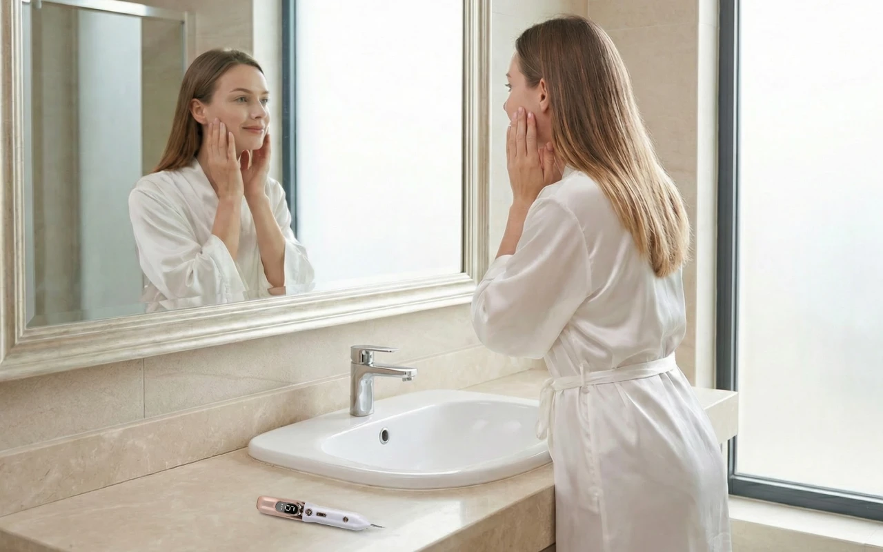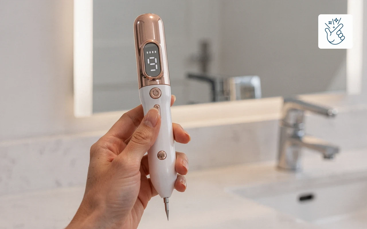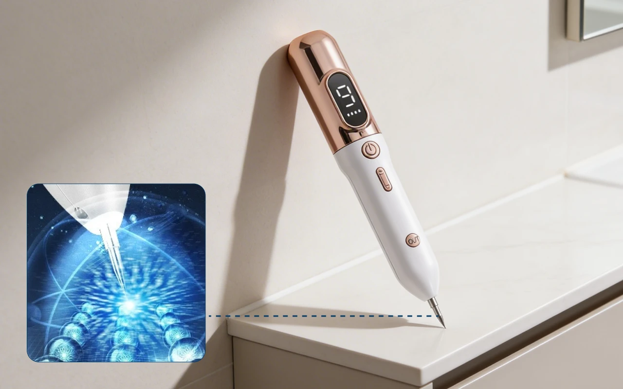 Elektrisk jon-teknologi riktar in sig på märken medan friska områden skyddas. Läkningen är skonsam och undviker starka kemikalier eller risker.