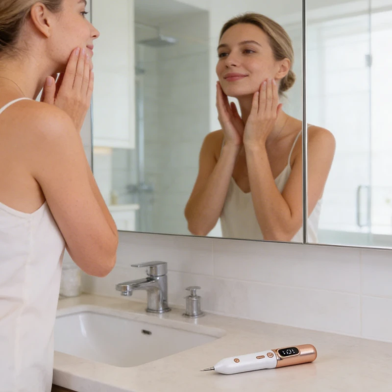 Elektrisk jon-teknologi riktar in sig på märken medan friska områden skyddas. Läkningen är skonsam och undviker starka kemikalier eller risker.