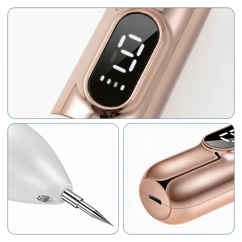 Intuitiv display och design gör varje steg enkelt. Byt nålar snabbt och ladda enkelt med USB.