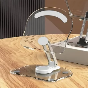 Njut av handsfree-bekvämlighet med Ortorex hållbara surfplattehållare. Den kommer att förbättra din komfort och effektivitet när du arbetar, läser eller surfar. Den eleganta akryl designen blandas sömlöst in i vilken arbetsyta som helst och ger en modern touch.