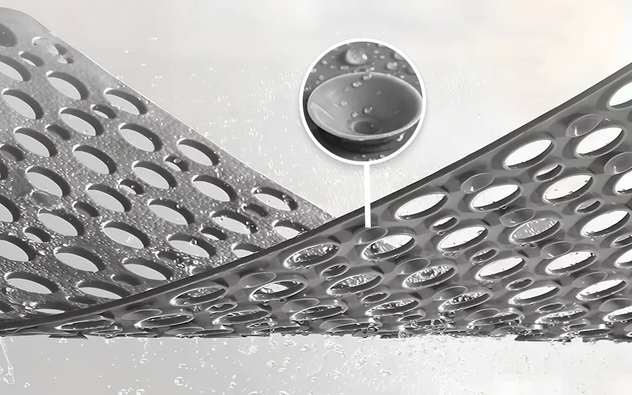 Sugproppar med hög hållfasthet håller mattan säkert på plats på våta kakel. Din familj rör sig tryggt, utan oväntade halkningar.