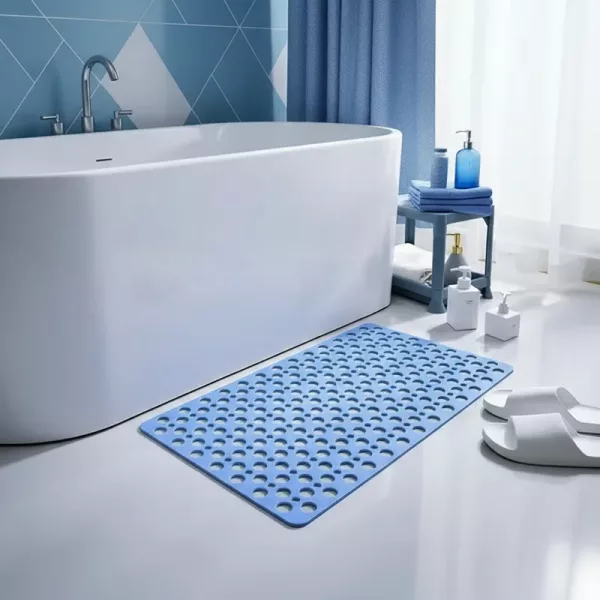 Min fru har problem med knäna, så jag skaffade den här mattan för extra trygghet. Den ligger still, även när barnen stressar igenom baden, och de mjuka nopporna känns avslappnande.